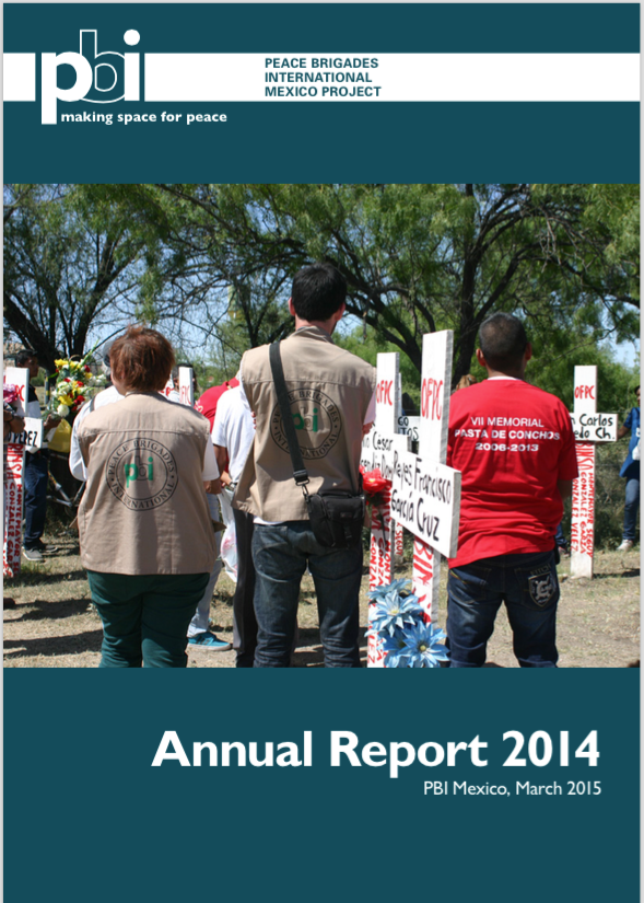 Mexico City, 31 march 2015.- PBI Mexico's Annual Report 2014 brings details of the project's work with human rights defenders in the states of Oaxaca, Chihuahua, Coahuila and Guerrero, as well as our activities at the international level. The report is now available to view and download.